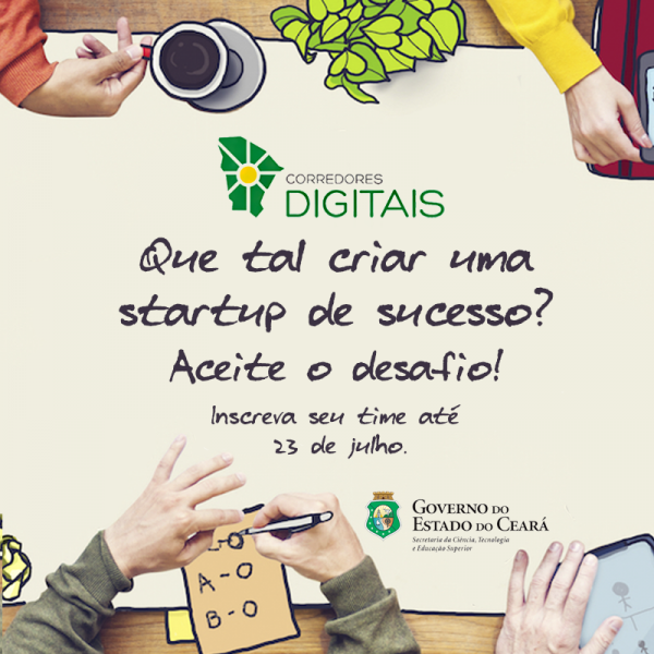 Estão abertas, até o próximo dia 23 de julho, as inscrições para seleção dos Jovens Empreendedores da terceira versão do programa Corredores Digitais, que contempla, agora em 2016, oito municípios: Fortaleza, Maracanaú, Beberibe, Jaguaribe, Sobral, Tauá, São Benedito e Quixadá. Também serão selecionados até 36 times que receberão, durante seis meses, capacitação e mentoria para tirar suas ideias do papel. As inscrições podem ser feitas pelo site do projeto: www.sct.ce.gov.br/corredoresdigitais.