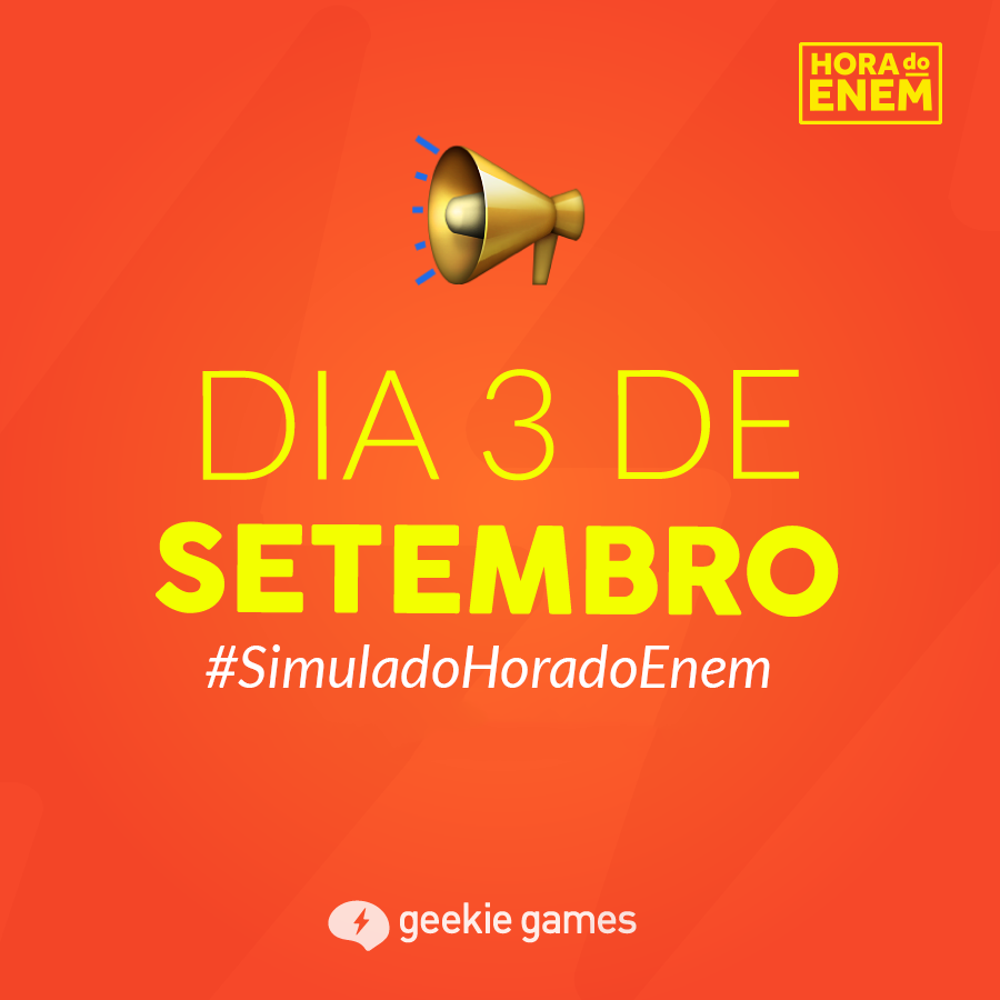 Estudantes de todo o Brasil poderão, a partir de 3 de setembro, fazer o simulado Hora do Enem, prova preparatória para o Exame Nacional do Ensino Médio (Enem) que é oferecida de forma gratuita. Será a terceira edição do simulado, que é realizado pelo Ministério da Educação (MEC) e desenvolvida pelo Geekie Games.